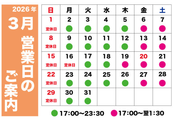 3月営業日のご案内